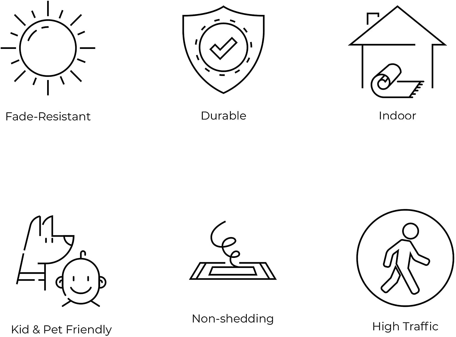 - [PET-FRIENDLY AND DURABLE]: Durable enough for high-traffic areas, this soft and comfortable area rug is perfect for families with kids. Low-pile synthetic rug fibers won’t trap dirt and debris, so they’re pet-friendly and easy to clean. Our trendsetting rug designs are perfect for the living room, dining room, kitchen, entry, bedroom, or home office.