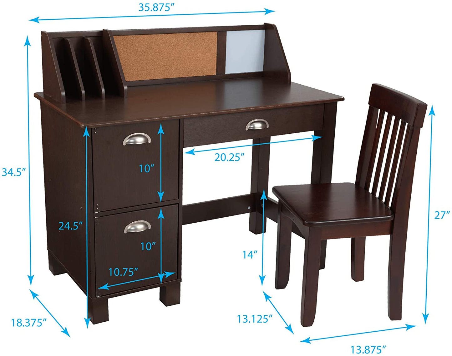 Our Study Desk with Drawers gives kids a perfect spot for working on art projects or finishing up their homework. The multiple storage options also help keep bedrooms tidy and organized, which mom and dad are sure to love. Features include. The Kid Kraft Study Desk with Chair gives young students a perfect workspace for finishing homework, studying or working on craft projects. A bulletin board surface gives them a place to pin pictures, drawings and important notes. 2 cabinets and a pencil drawer offer plenty of storage to keep kids organized.