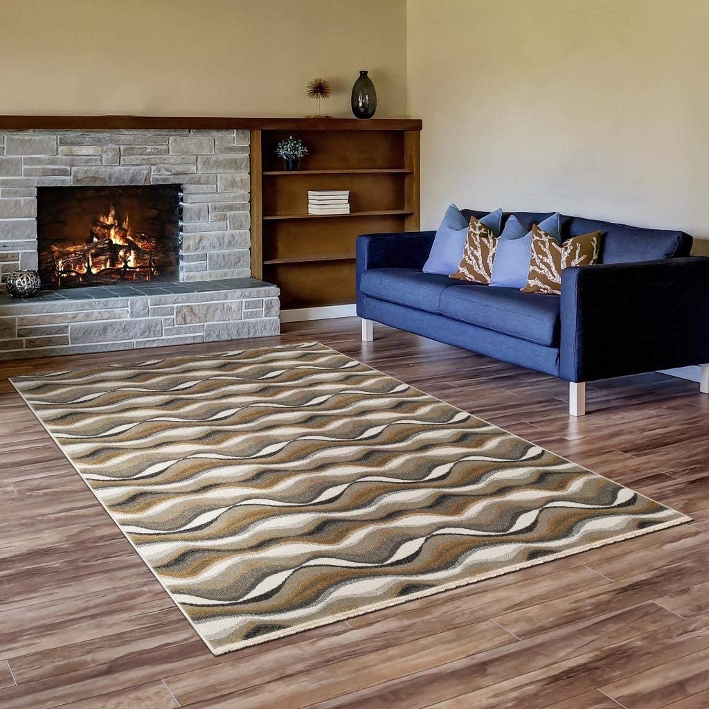 Arman Modern Ivory Beige Brown Soft Area Rug