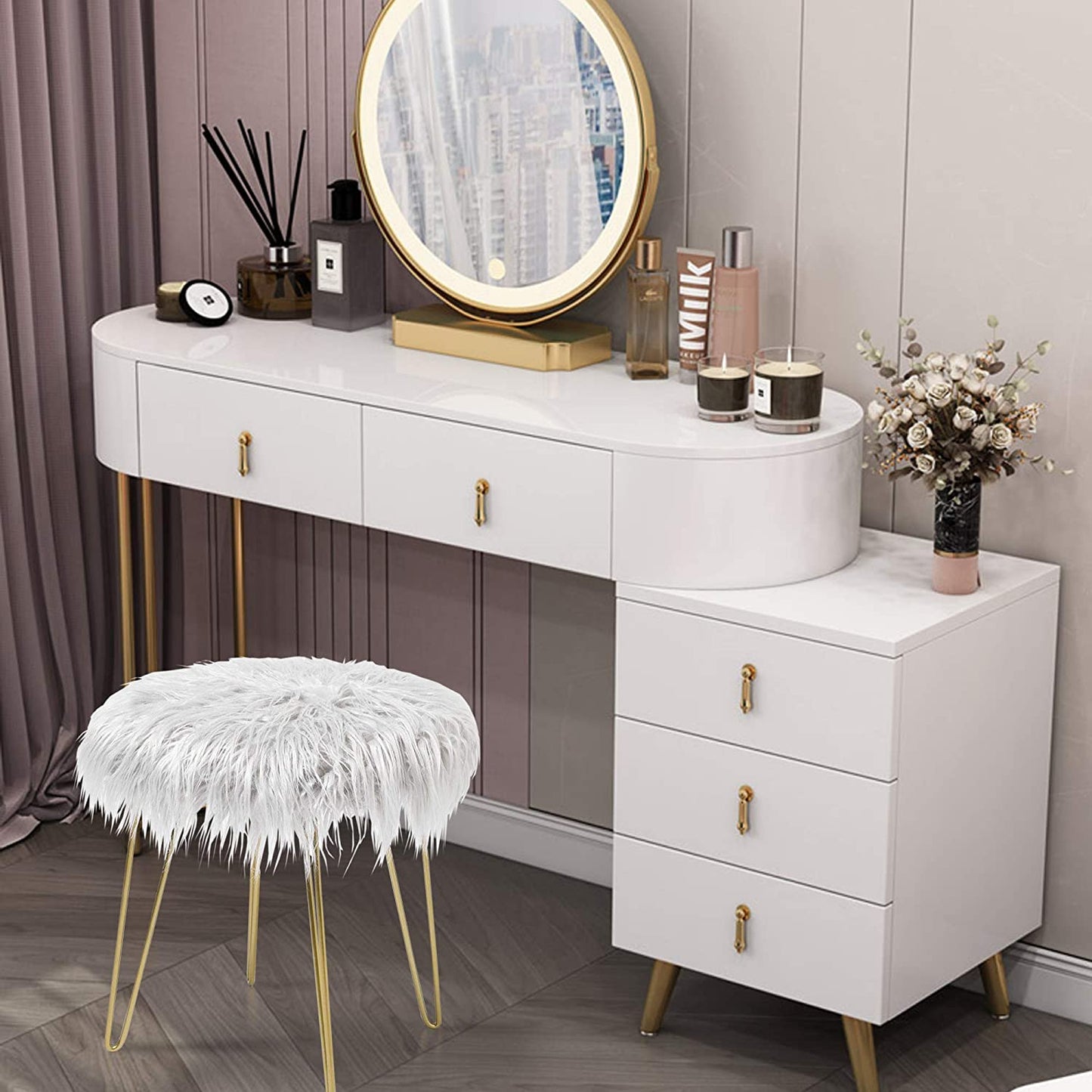 Fur Stool Fuzzy Vanity Chair Makeup Vanity Bedroom Seat