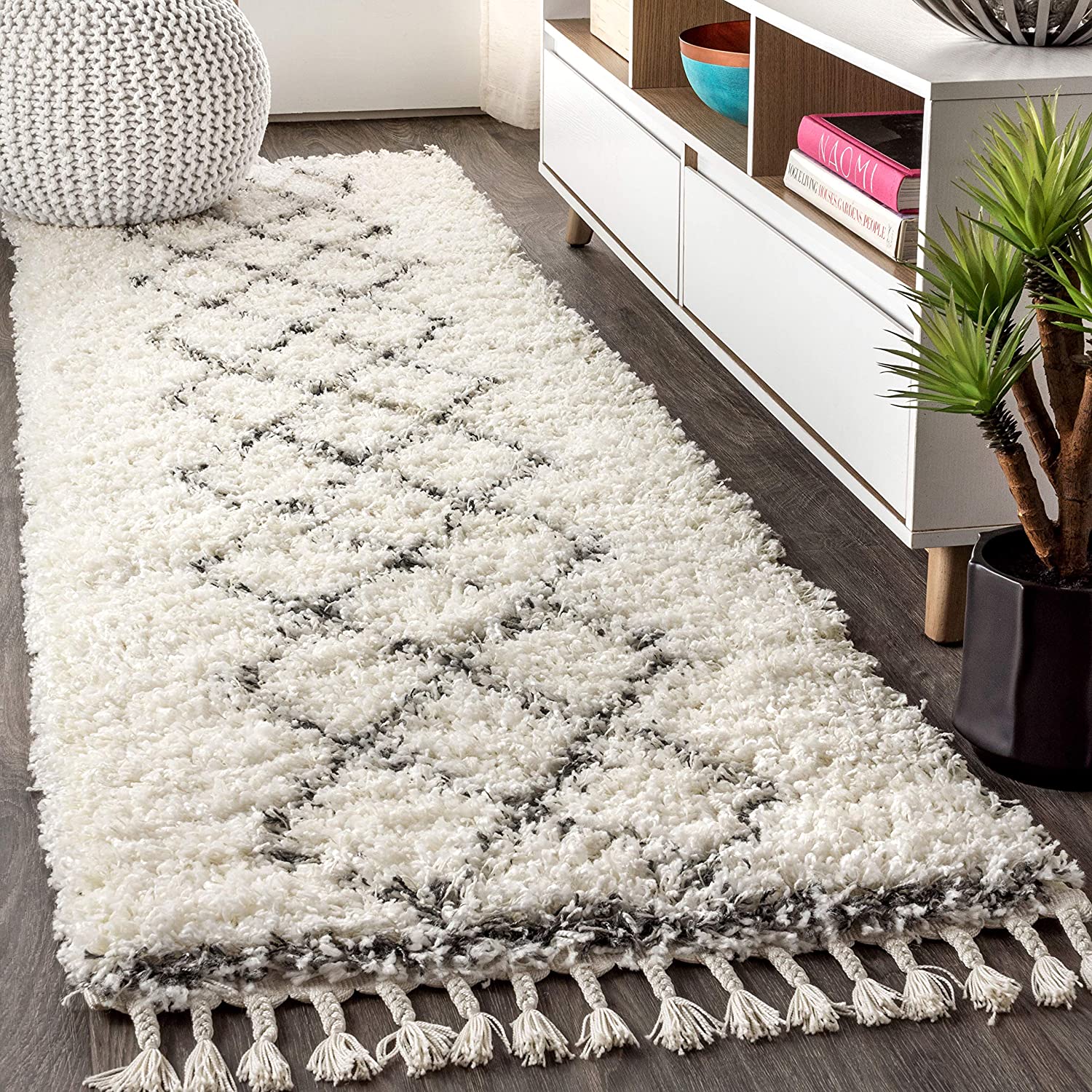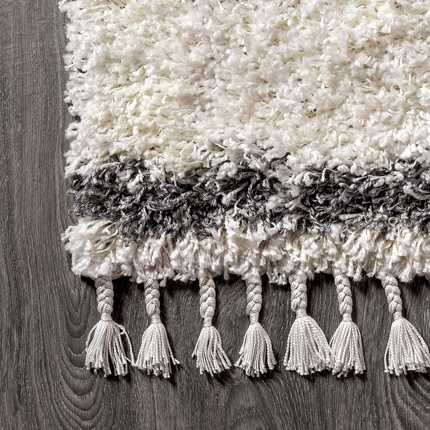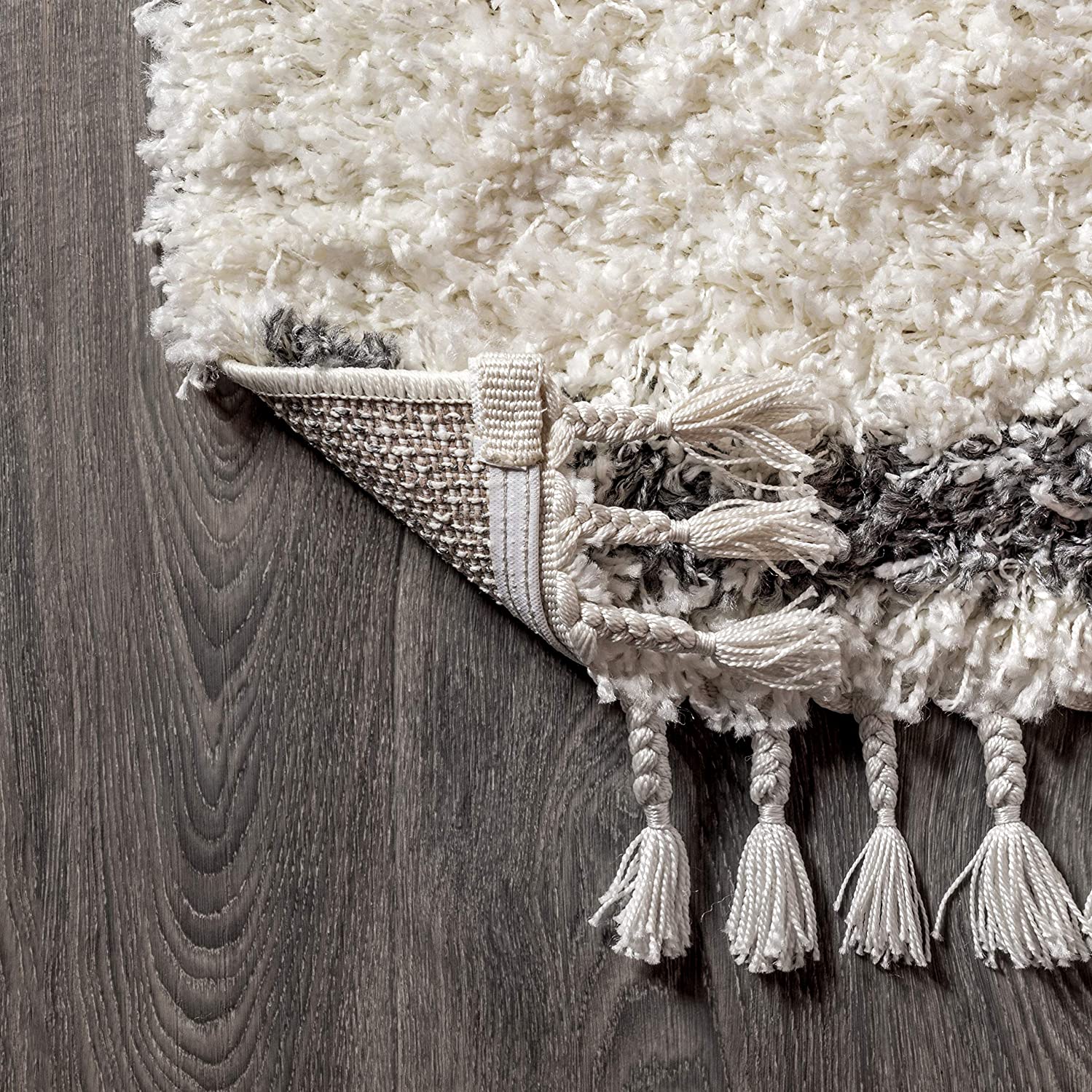 Mercer Plush Tassel Moroccan Tribal Geometric Trellis Area Rugs, Cream/Grey