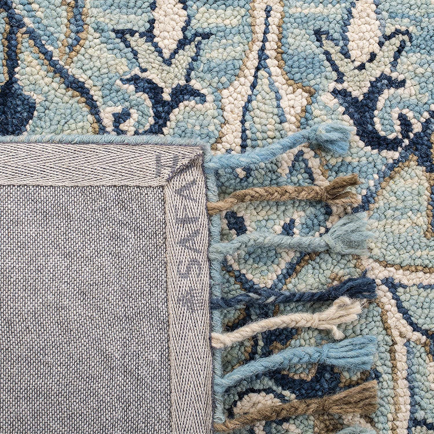 Blossom Collection Handmade Tassel Premium Wool Accent Rug Blue / Ivory