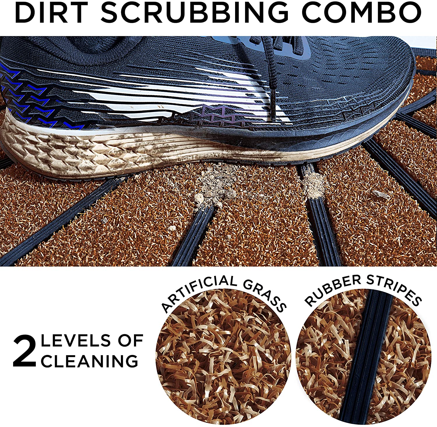 - 🌸CONSTRUCTION - The combination of artificial grass and rubber stripes in Ubdyo indoor rug will perfectly remove the dirt off your shoes and capture mud and dust. Owing to its heavy duty construction you can use patio rug as doormats for outdoor entrance as well as door mat for indoor entrance.